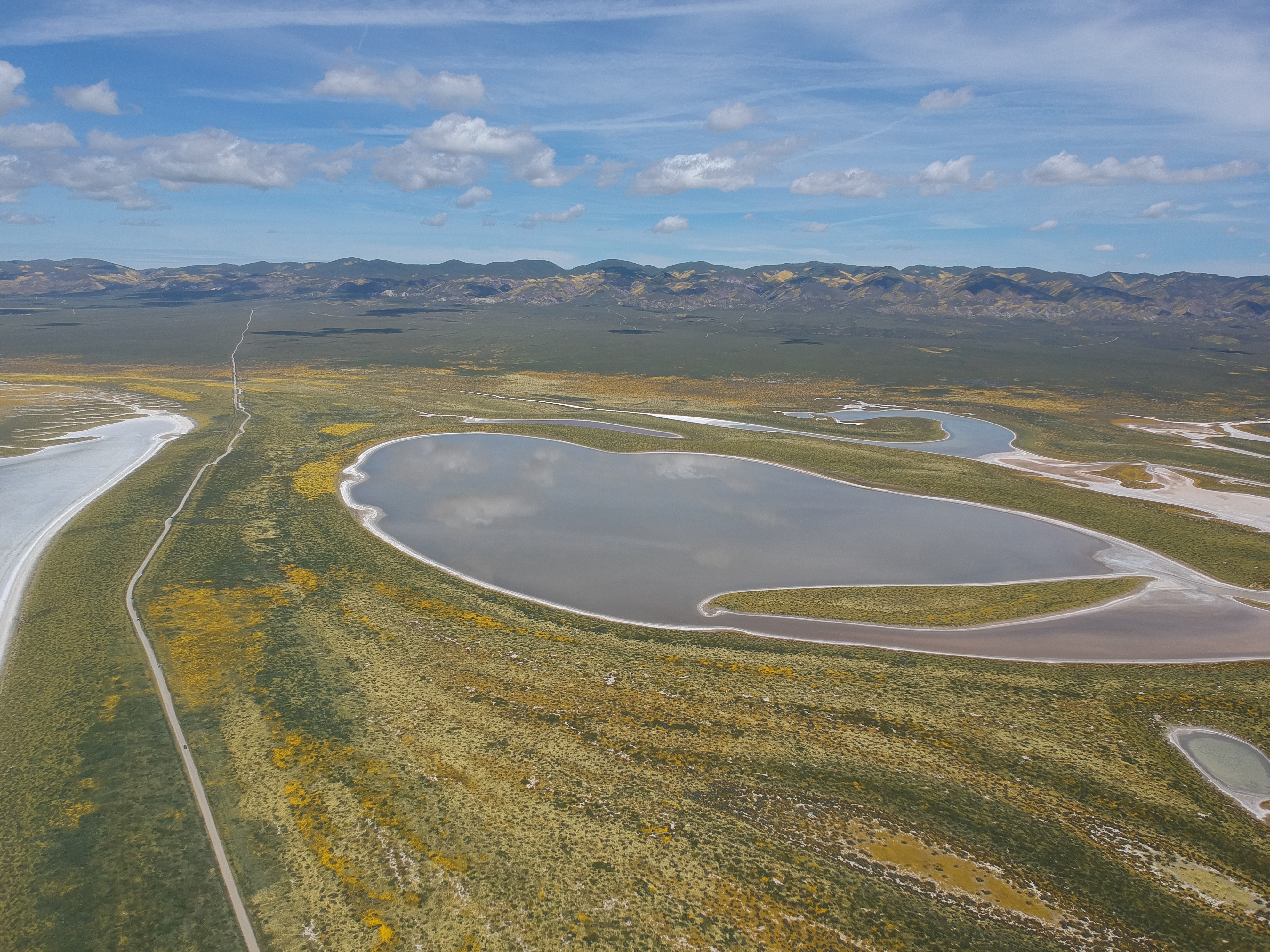 I visited Carrizo Plain National Monument, a remote valley in California, this past weekend to see the current wildflower show. Unlike last month when I was there, there are now flowers covering the valley floor. The valley is also filled with a series of salt flats, the largest of which is Soda Lake - the flats have some water this time of year.