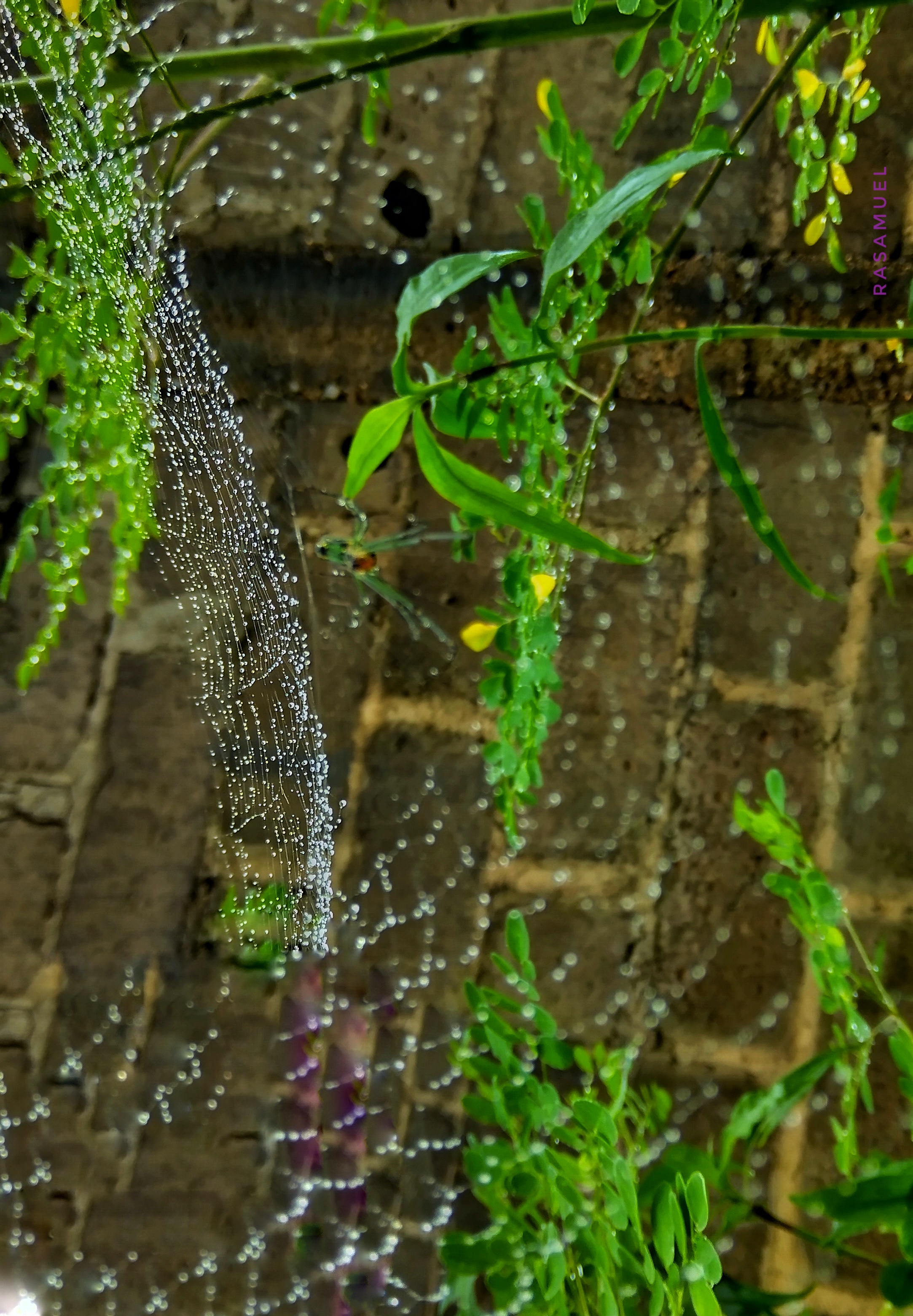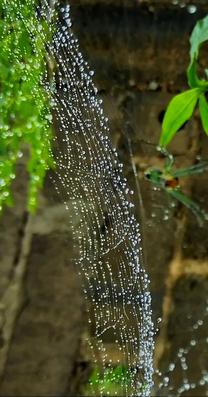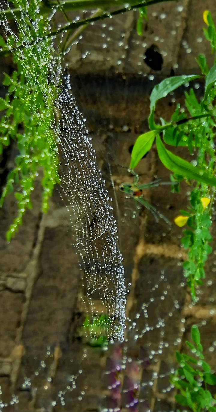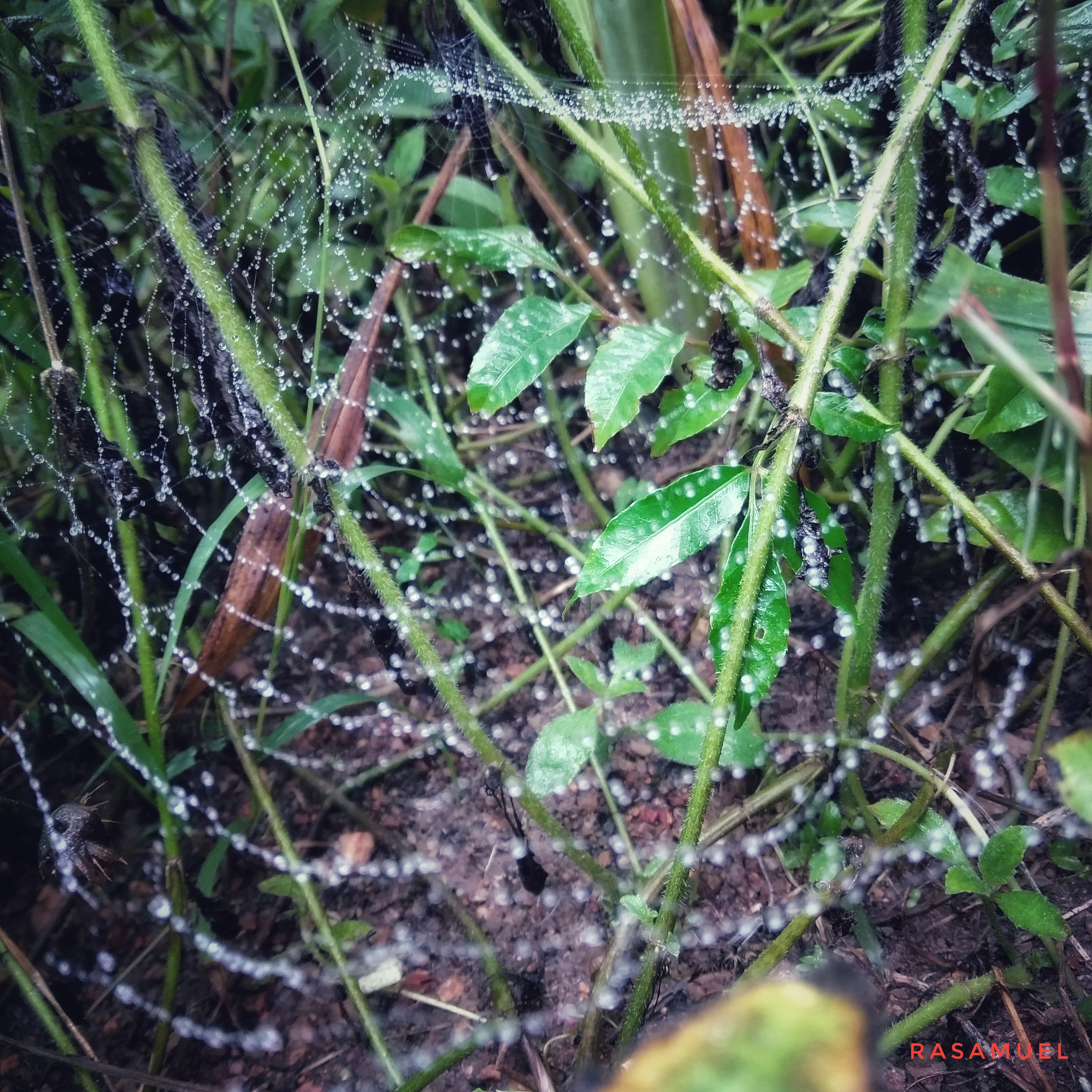 Imagine my surprise when, having forayed deep into the wild wild west -- aka just outside my backyard -- instead of finding dangerous animals, I see beautiful webs spurned all over lush green leaves.