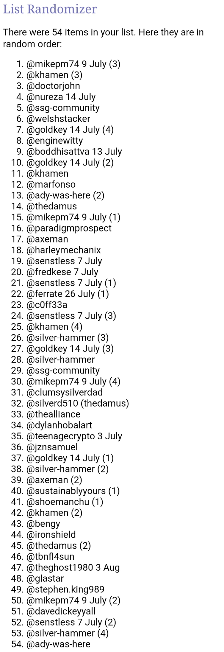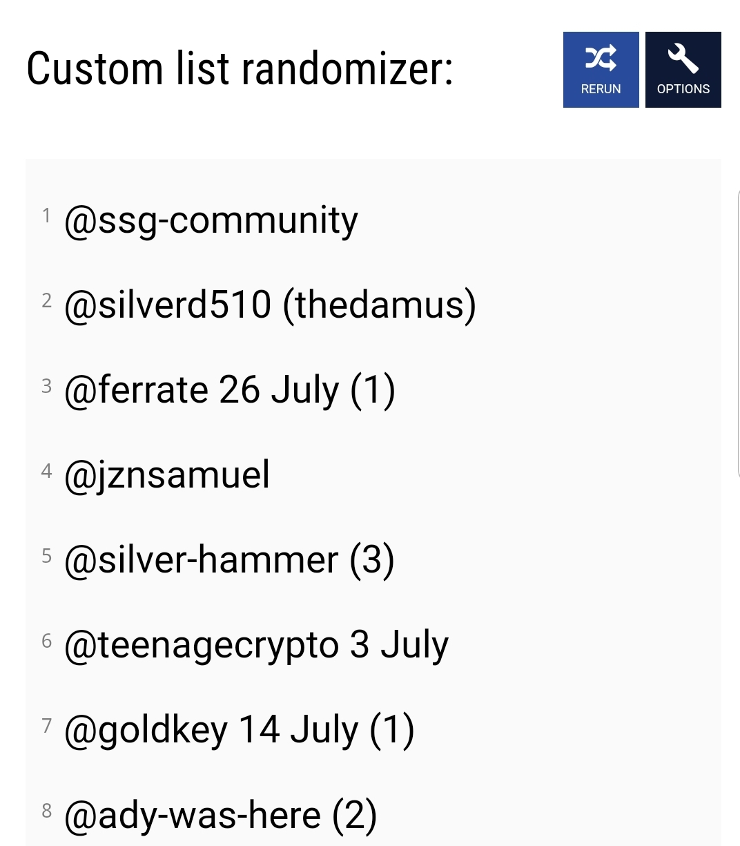 And next we will use Random Name Picker to select the 8 members for 100% Upvotes Tomorrow