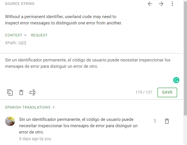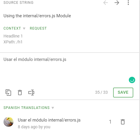 Node.js is currently being translated into 33 languages and I am contributing to translate it into Spanish. 56% of the whole the project has been translated.