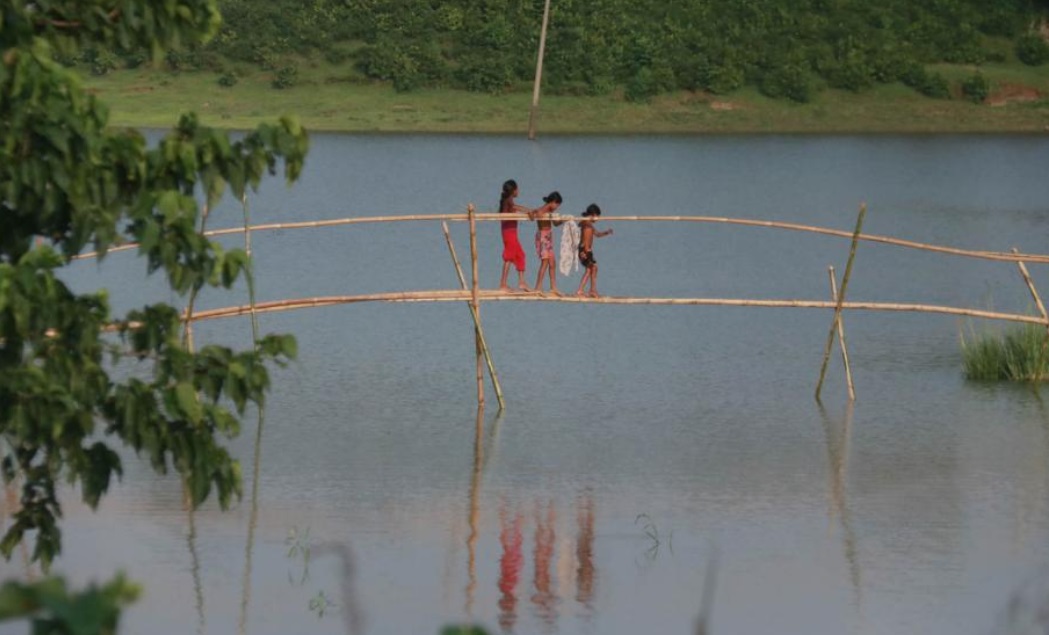 Three children going through a canal bamboo scarfsanjibking (-6)(1)in #undefined • 7 years ago #picture #photo #bangladesh #nature #village
