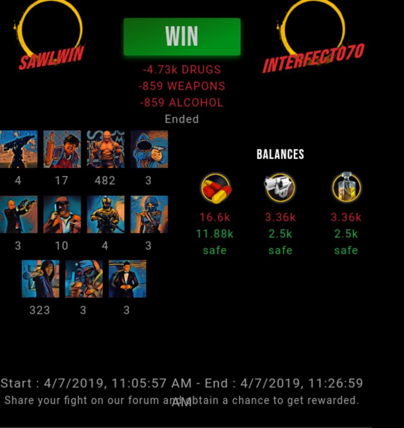 Check my latest fight ! sawlwin vs interfecto70sawlwin (58)in #undefined • 7 years ago #drugwars-fight #gaming #fight #dw