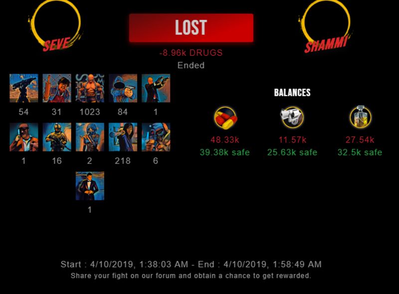 Check my latest fight ! seve vs shammishammi (43)in #undefined • 7 years ago #drugwars-fight #gaming #fight #dw