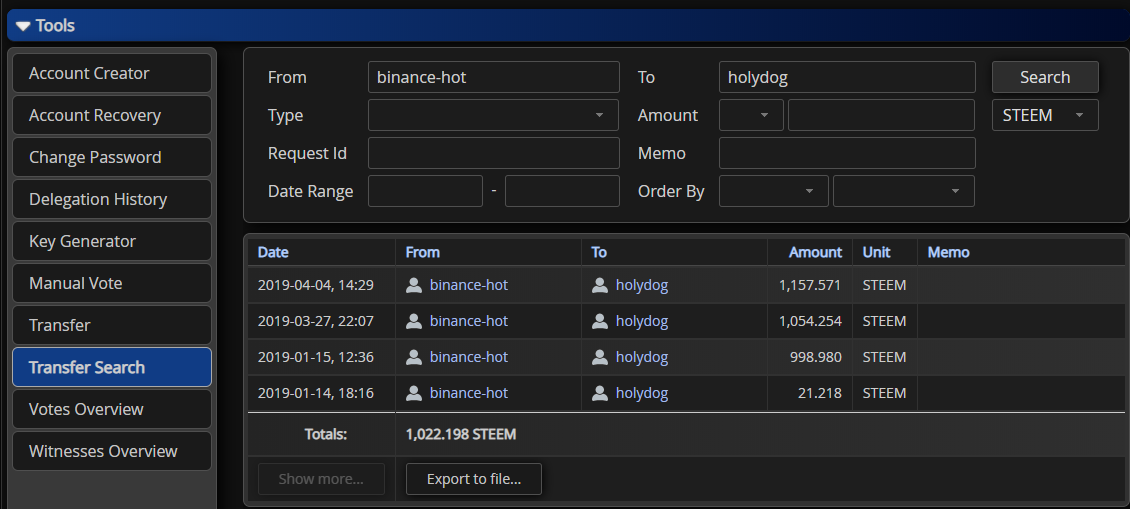 I found an issue with Totals in Transfer Search: