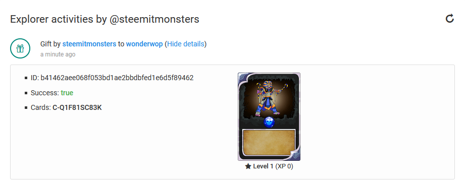 3 ) then I go on steemmonsters market and find a card to giveaway to you guys for that value.