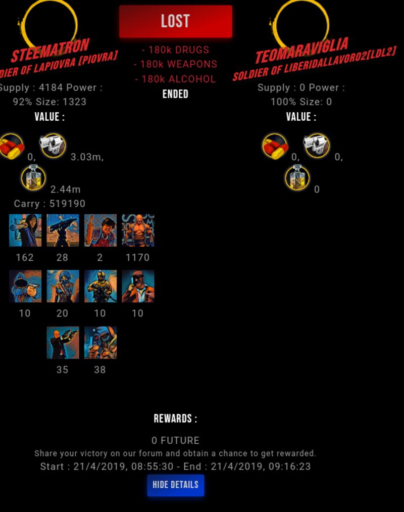 Check my latest fight ! steematron vs teomaravigliateomaraviglia (42)in #undefined • 7 years ago #drugwars-fight #gaming #fight #dw