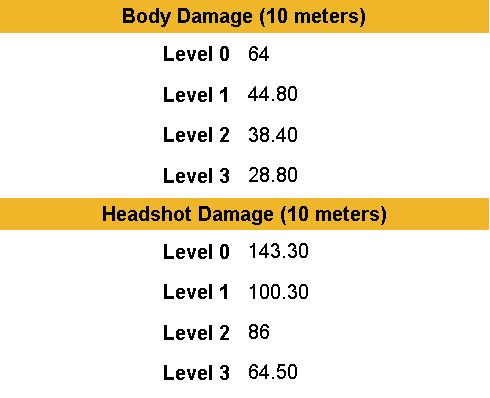 see the hit damage 61, that mean 2 bullet will kill/knock enemy if they dont use HELMET or VEST.