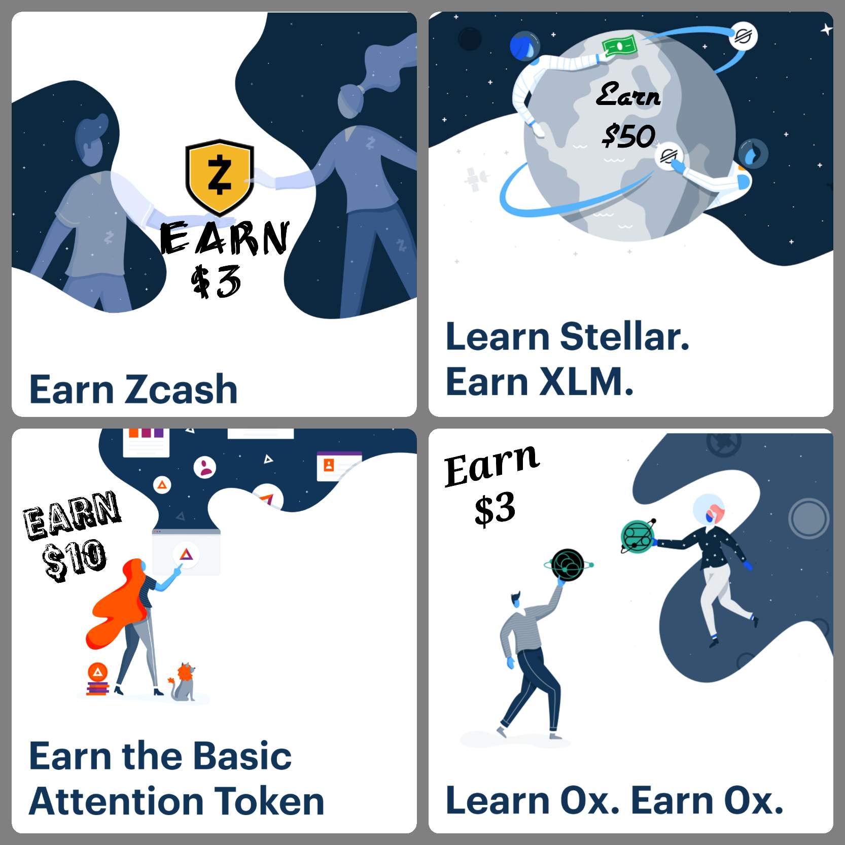 With Coinbase Earn users can get free cryptocurrency by watching 2 - 3 minute videos about a particular digital asset and then taking a quick 1-question, multiple choice quiz based on the clip you just watched. The whole process is very easy and best of all you can make some good money. For instance, Stellar Lumens $XLM is giving $50 in free tokens. Another token called the Basic attention Token $BAT is giving $10 in tokens.