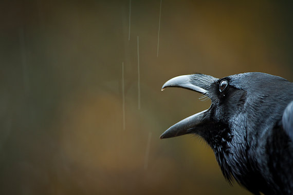 Ru takes wing back up above the cat, flying, circling in the rain, then sees his opportunity and attacks, beak first slamming into the cat's face. The cat bats him down mid-flight and Ru hits the ground hard. The Cat jumps on top of him and starts to tear Ru apart. The cat rips Ru's right wing completely off, Ru pecks the cats eye out, then claws his way to escape.