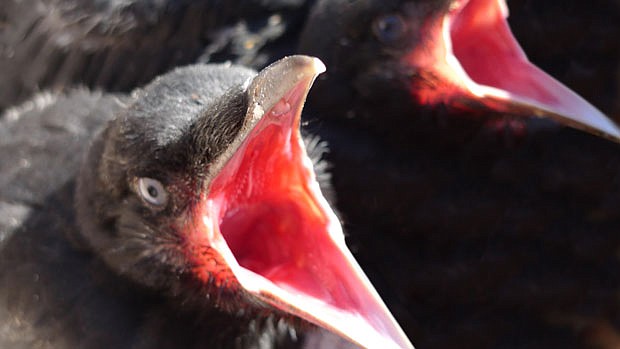 Far above the city sidewalk we see a small nest of chicks in a crow's nest. Chirping and cuddling one another as the mother crow launches off in search for food. Playfully pecking at one another, one of the chicks climbs to the edge of the nest to move away from the others when he suddenly looses his footing. The chick starts to flap it's undeveloped wings desperately as he spirals down to the pavement below.