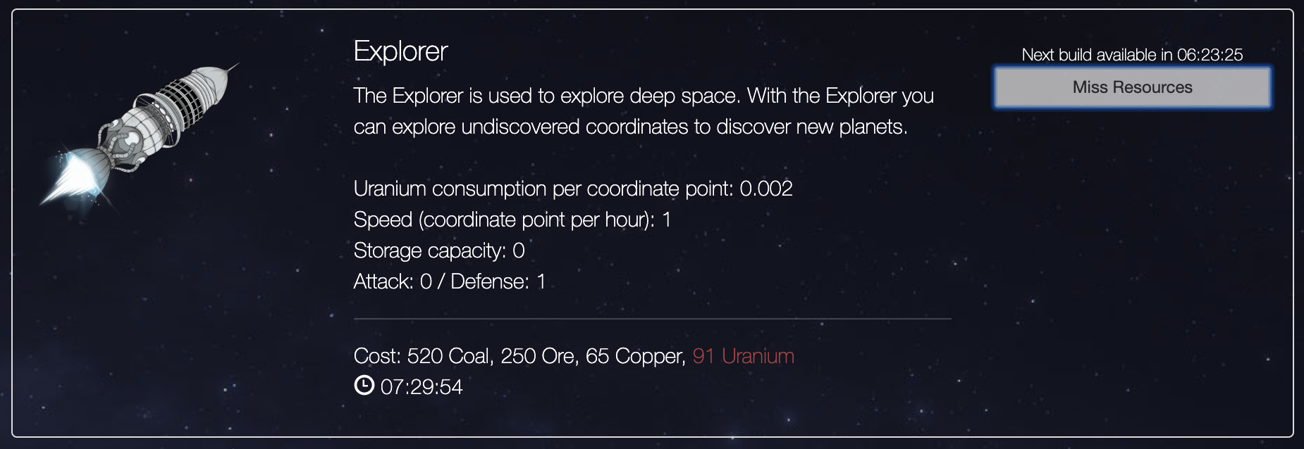 T minus 6 hours until launch!tiger-zaps (60)in #undefined • 7 years ago I finally got my explorer up to level 20 and my shipyard to level 13. Now I can build explorers in my shipyard. First mission ready for launch in 6 hours! #nextcolony #steempeak