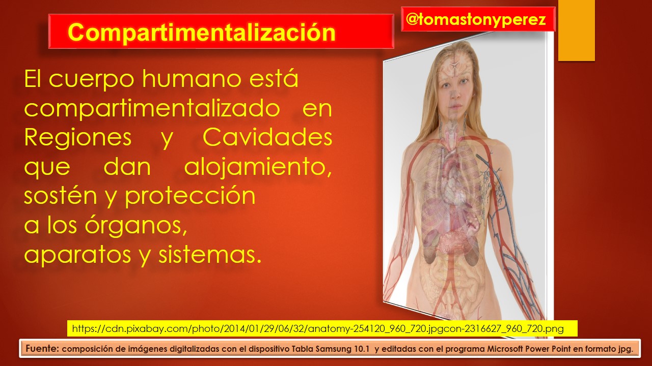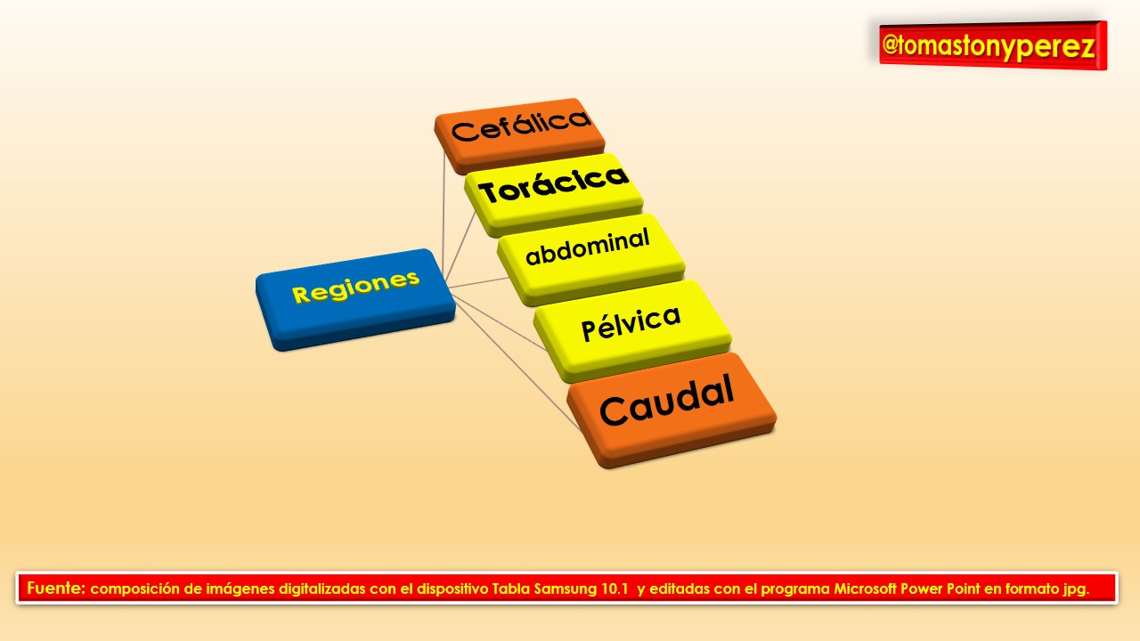 Lo primero es estar claros en que las regiones corporales son: cabeza, cuello, dos extremidades superiores y dos inferiores. También es importante acotar que es común dividir el tronco en tórax y abdomen. De hecho, las estructuras de carácter principal poseen nomenclatura anatómica haciendo esas y otras consideraciones, por lo que el aprendizaje de la terminología nos da una base sólida para aprender el nombre de aquellas estructuras que se encuentran aledañas, relacionadas o subyacentes.
