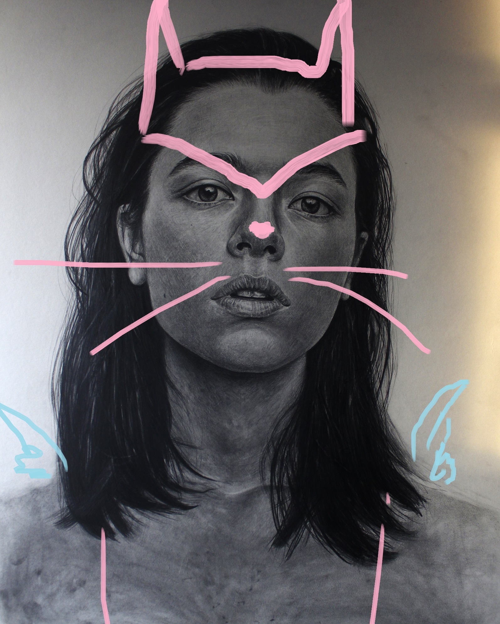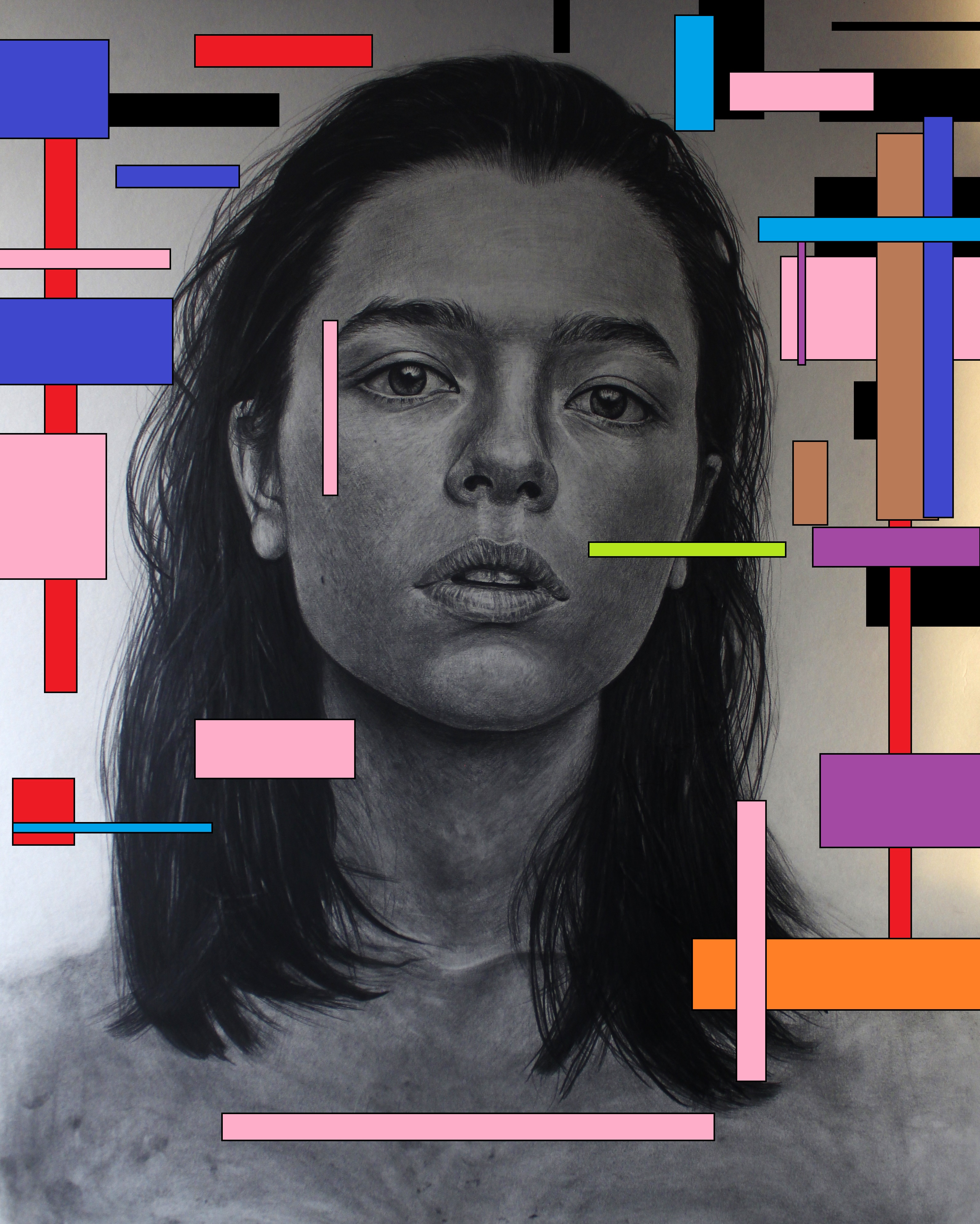 And also sometimes, I like to try to some another tests on my drawings with colors , abstract lines... I did a couple of variations on this one.