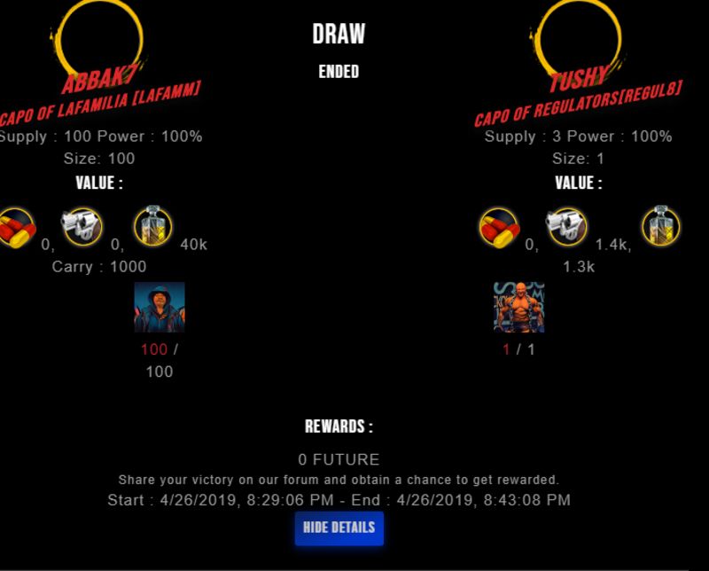 Congratulations @tushy ! Your fight received an upvote of 3.7% from the King Dealer as incentive for your activity and as a gratitude for your support to the game.