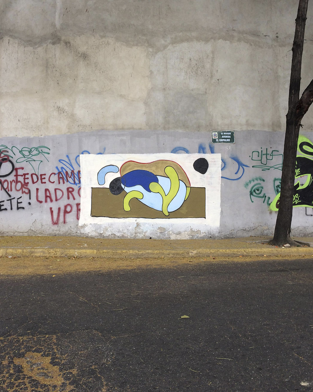 Yo elegí una pared en una zona con buen tránsito, pero donde las personas y los carros se detienen poco, normalmente van de paso. La pared estaba pintada con propaganda política, lo cual me pareció oportuno, me ayudó a no tener que gastar en fondeo.