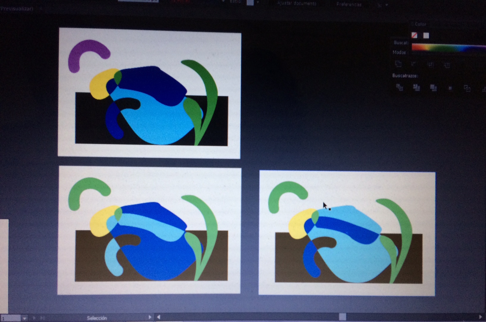 En éste caso hice un boceto manteniendo las proporciones, ya que no tenía uno sino tres posibles espacios para pintar. Finalmente elegí uno y en el lugar realicé modificaciones para que se acoplara y la composición fuera equilibrada y armónica.