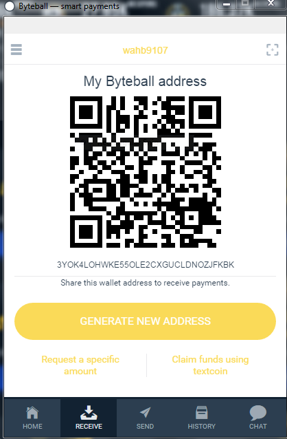 My byteball address byteball:ATC6BWUQSNHC63IQCVCGHWAKYLLEABQD