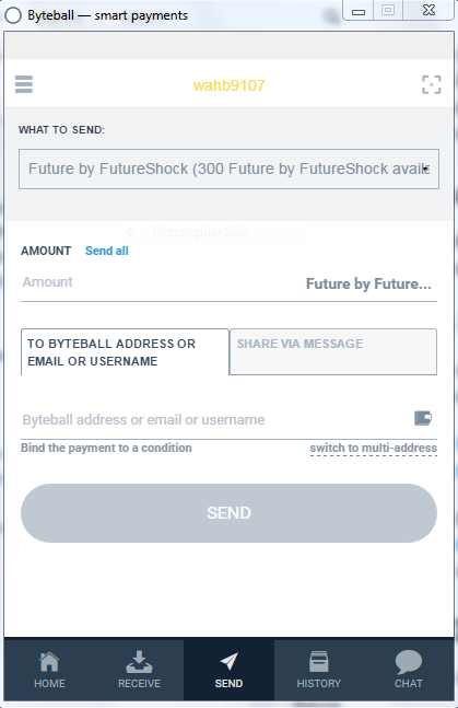 Open Your Obyte Wallet And Click On "Send" Tab