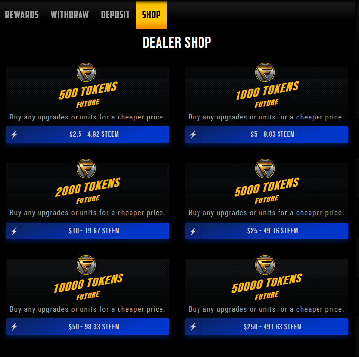 You Can Also Buy Some Future Tokens In-game Instantly it is cheaper than upgrading with steem.