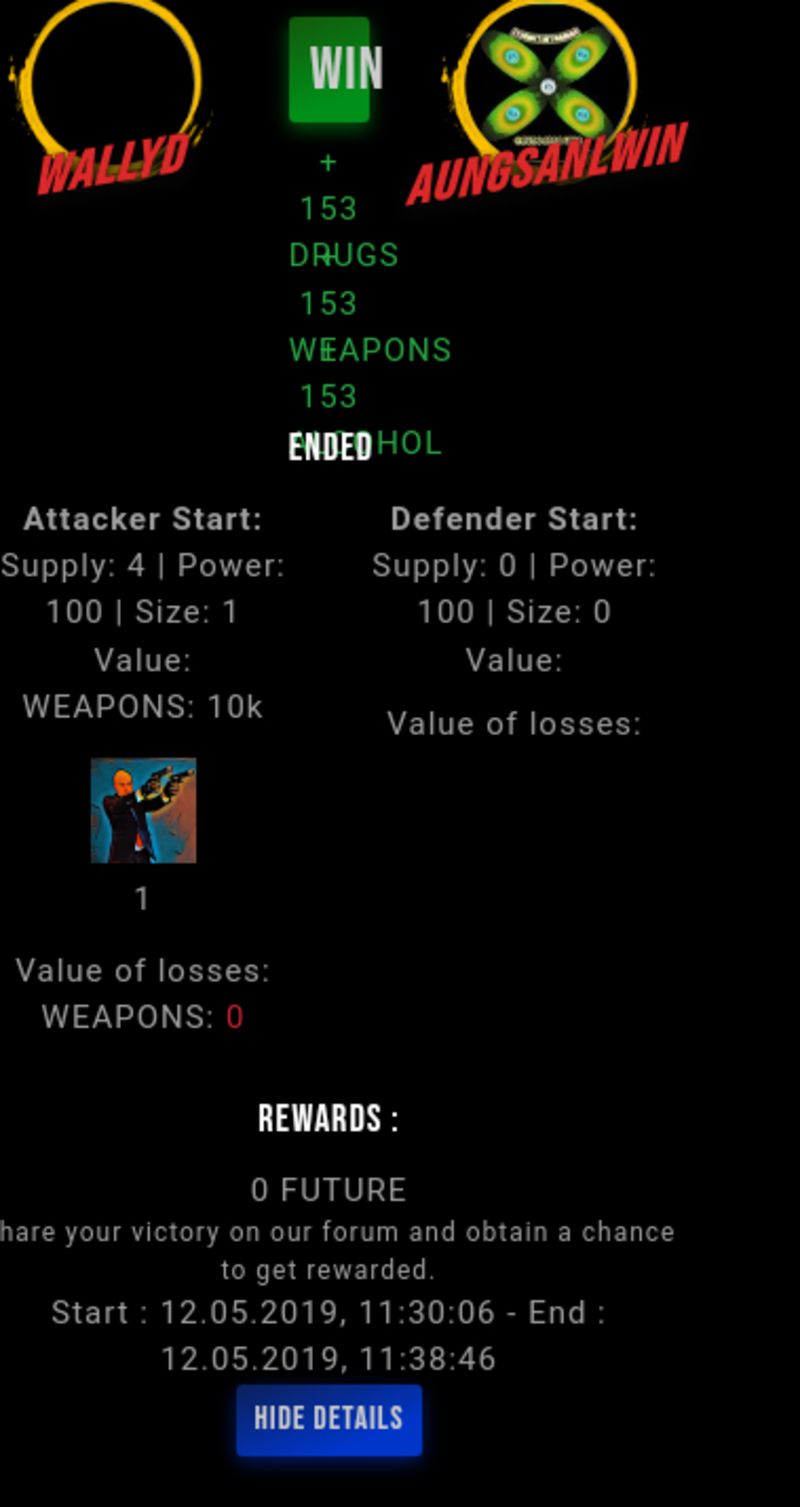 Check my latest fight ! wallyd vs aungsanlwinwallyd (42)in #undefined • 7 years ago #drugwars-fight #gaming #fight #dw