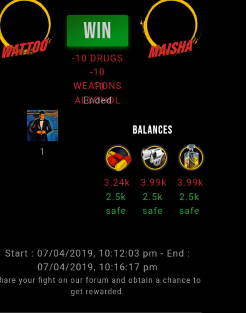 Check my latest fight ! wattoo vs maishawattoo (58)in #undefined • 7 years ago #drugwars-fight #gaming #fight #dw