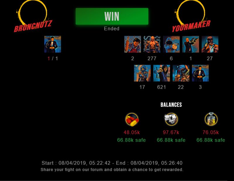 Check my latest fight ! broncnutz vs yourmakeryourmaker (41)in #undefined • 7 years ago #drugwars-fight #gaming #fight #dw