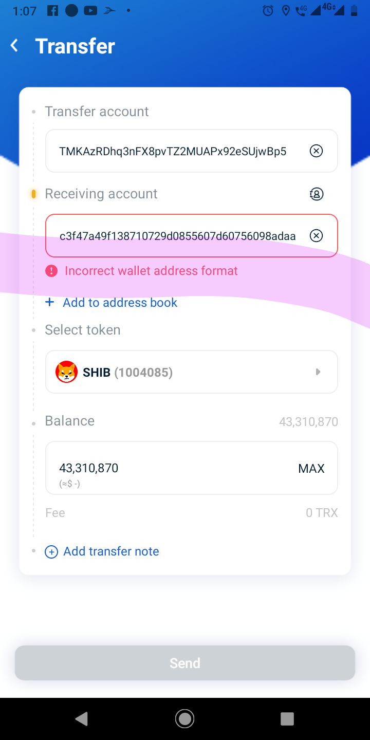 3- AL INTENTAR ENVIAR LOS TOKENS A CUALQUIER BILLETERA O EXCHANGE ARROJA UN ERROR.