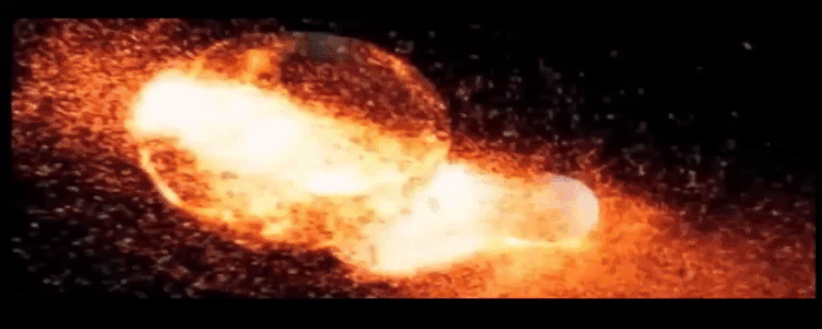 It was fine for millions of years but eventually and what did happen to it was that it collided with Earth. Now, it's believed that the collision happened quite slowly and the centers, the cores of both Theia and Earth fused into one. And material from the mantle and crust of Earth wasn't just scattered but it was forcefully ejected, literally launched into outer space.