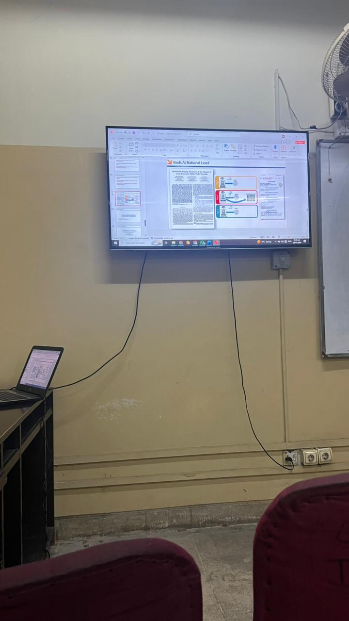 During lecture time i took picture and our classroom looks simple and arrange and the scren is clearly visible. Teachrs explain lessons properly and students note attentively. and there is silence in the classroom during lecture times and environment is quiet and comfort