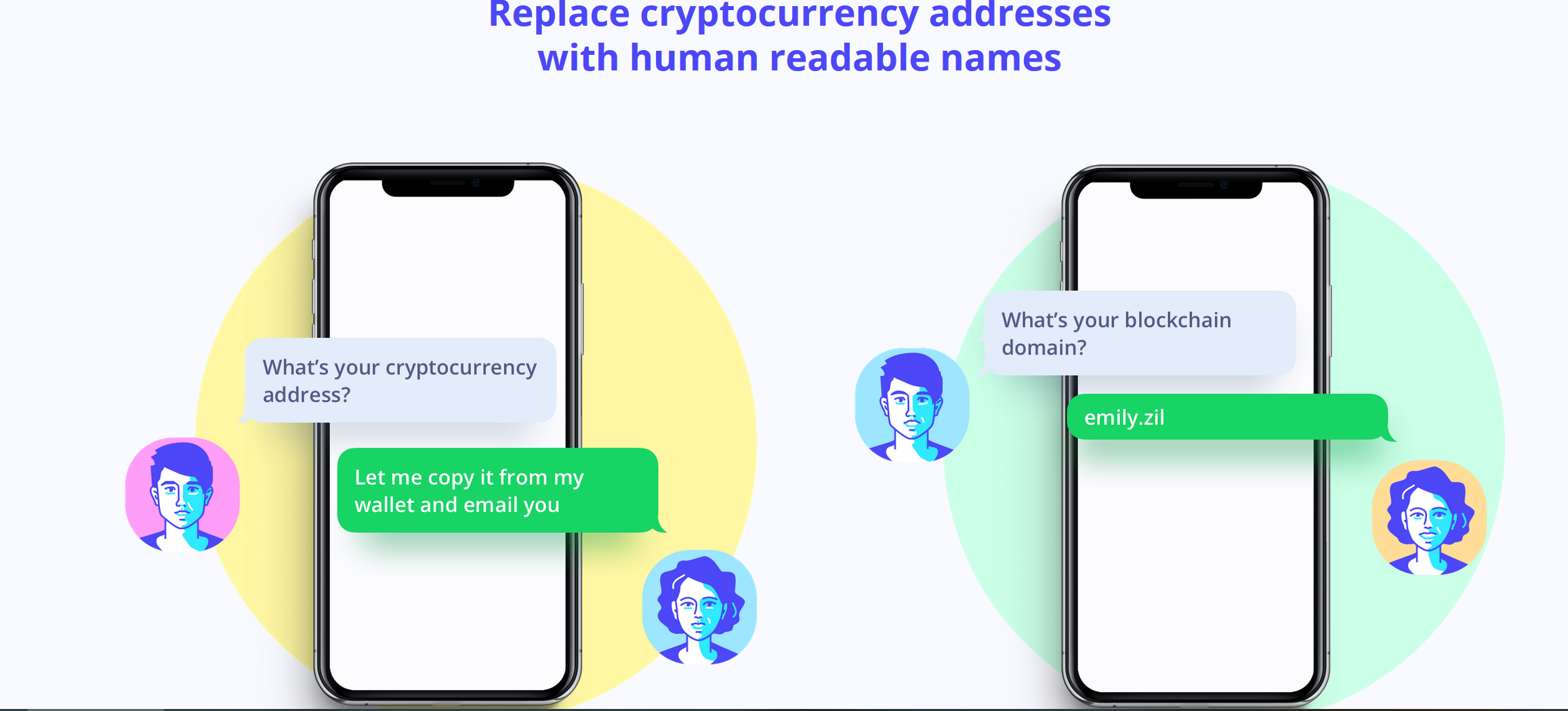 Add your bitcoin, Ethereum, and Zilliqa addresses to your .zil domain inside of the ‘my domains’ section @ unstoppabledomains.com. When someone types yourname.zil into a wallet, the wallet looks up that domain on the blockchain, finds the appropriate address, and sends