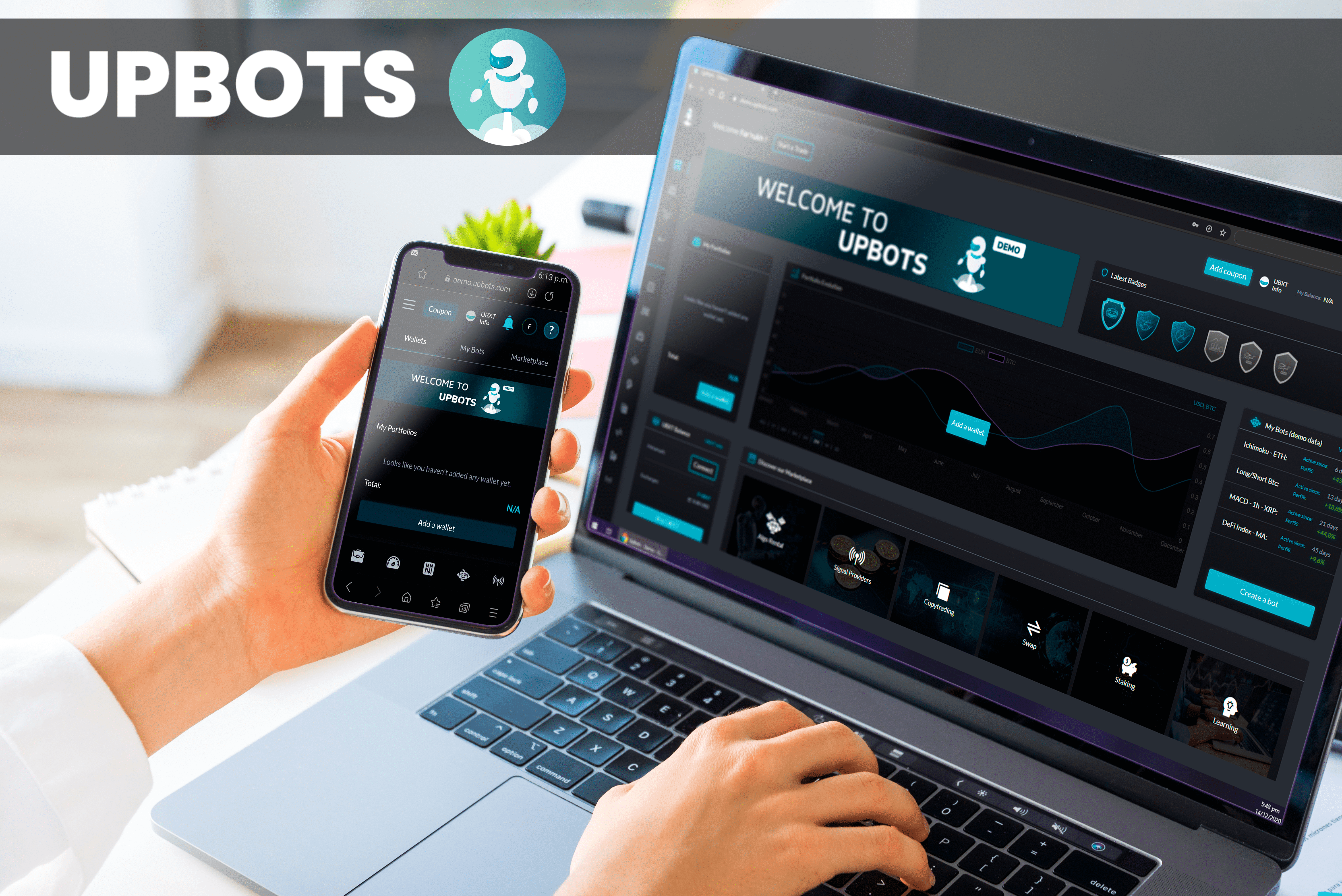 UpBots is the first complete cryptocurrency and traditional trading marketplace. The UpBots platform's goal is to become a platform that both first-time traders and experienced traders can use to carry out trades. It brings together various services on one platform, services that were previously unavailable to traders. The UpBots platform is easy to learn and navigate, has a user-friendly interface, and is extremely easy to understand. The platform also has features and tools such as risk management tools, trading bots, trading courses, and in-depth material for experienced traders to refer to for their trading strategies.