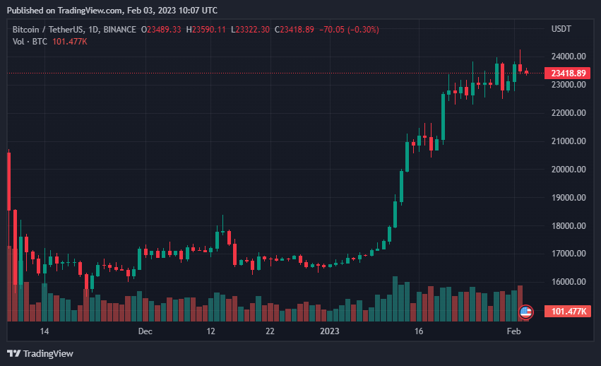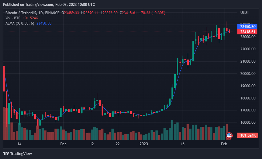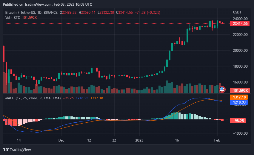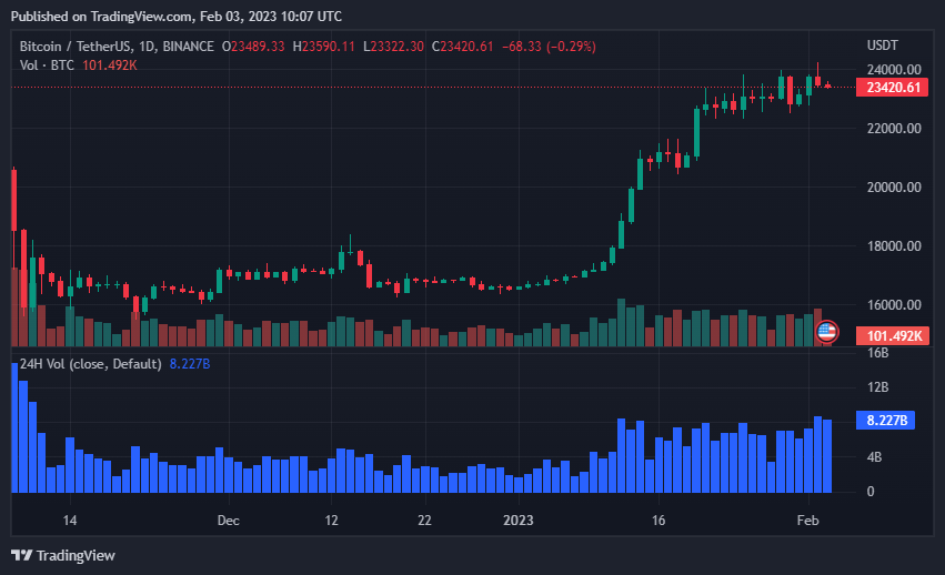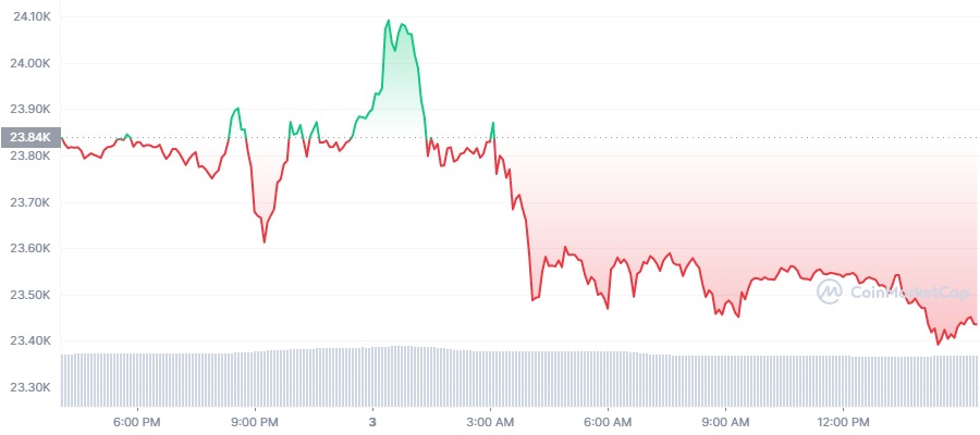 In the last 24 hours, the highest price of the BTC coin hit High: $24,091.54. Which is most visible in the last Coinday update. Currently, the trading volume of BTC is expected to be very good. Hopefully BTC is bringing us a good sign.It is the mother coin for all people to invest in it independently. If you don't keep an eye on it, you won't be able to make much profit on other coins. Because all coins go up and down depending on it. Its chart is very good.Bitcoin price today is $23,432.38 USD with a 24-hour trading volume of $29,323,377,369 USD. Bitcoin is down 1.70% in the last 24 hours.Even though the price of the coin has dropped today, its prize seems to be at a very good level. Because its trading volume is very good. Because many big companies are holding in it. If you want, you can hold a bit after the price drops today.