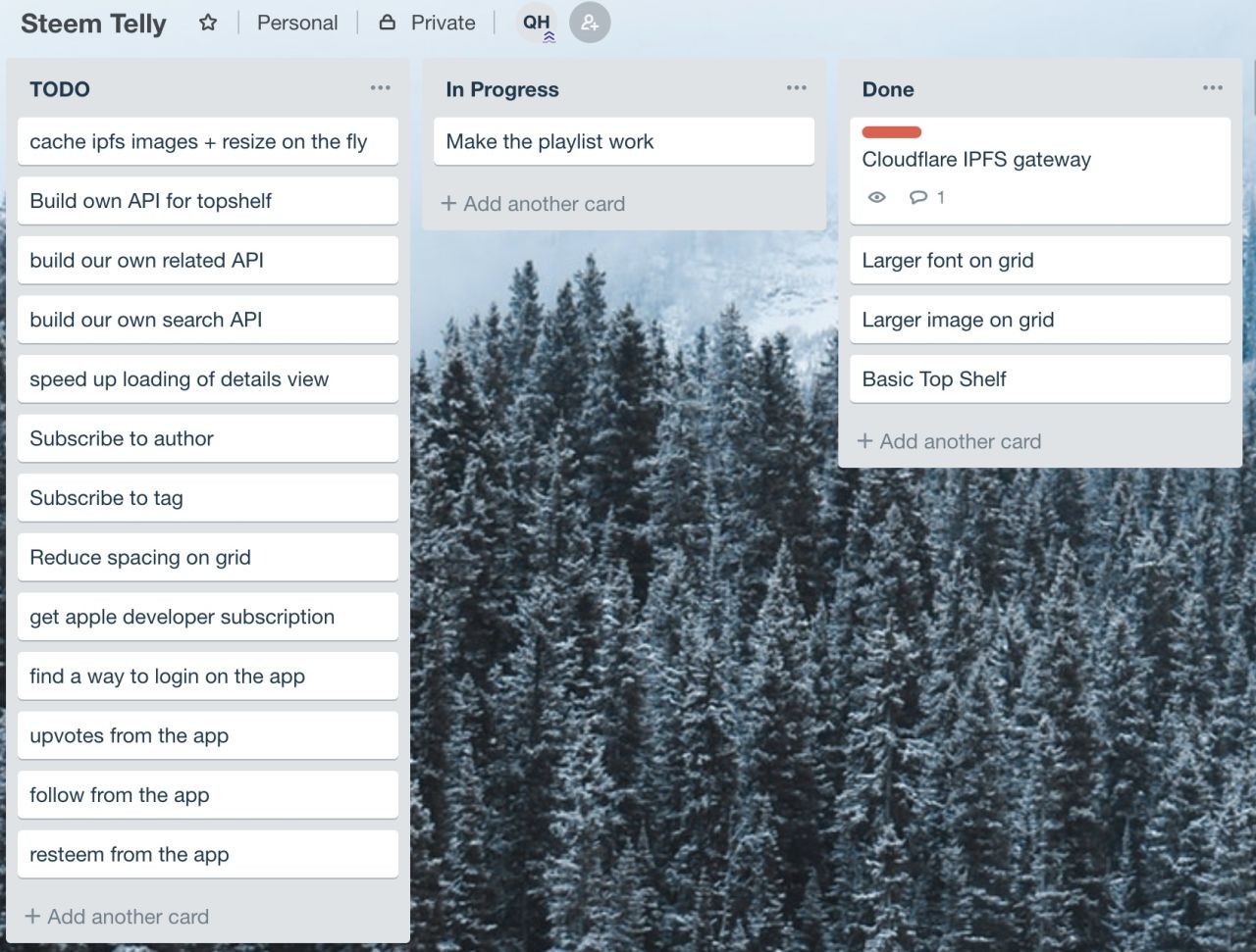 I've started to use Trello to track tasks for the app as there are more and more things to be done. Here is the current list: