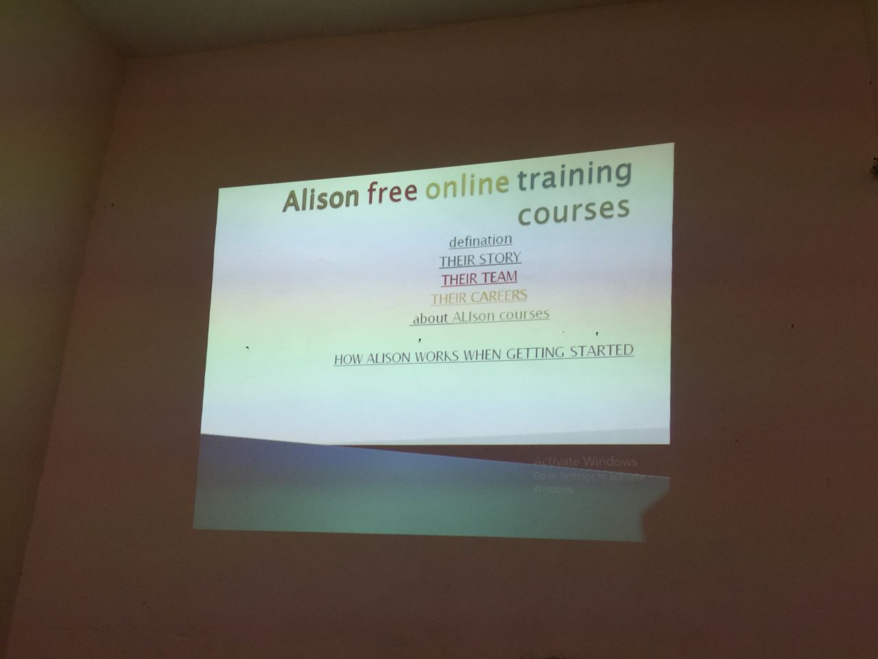 Next was Amratu who did a presentation on Alison, a distance learning platform that has more than 1000 courses for people to learn for free. In her presentation, Amratu highlighted the different steps involved in registering and studying with Alison as well effectively presented Alison to the participants.