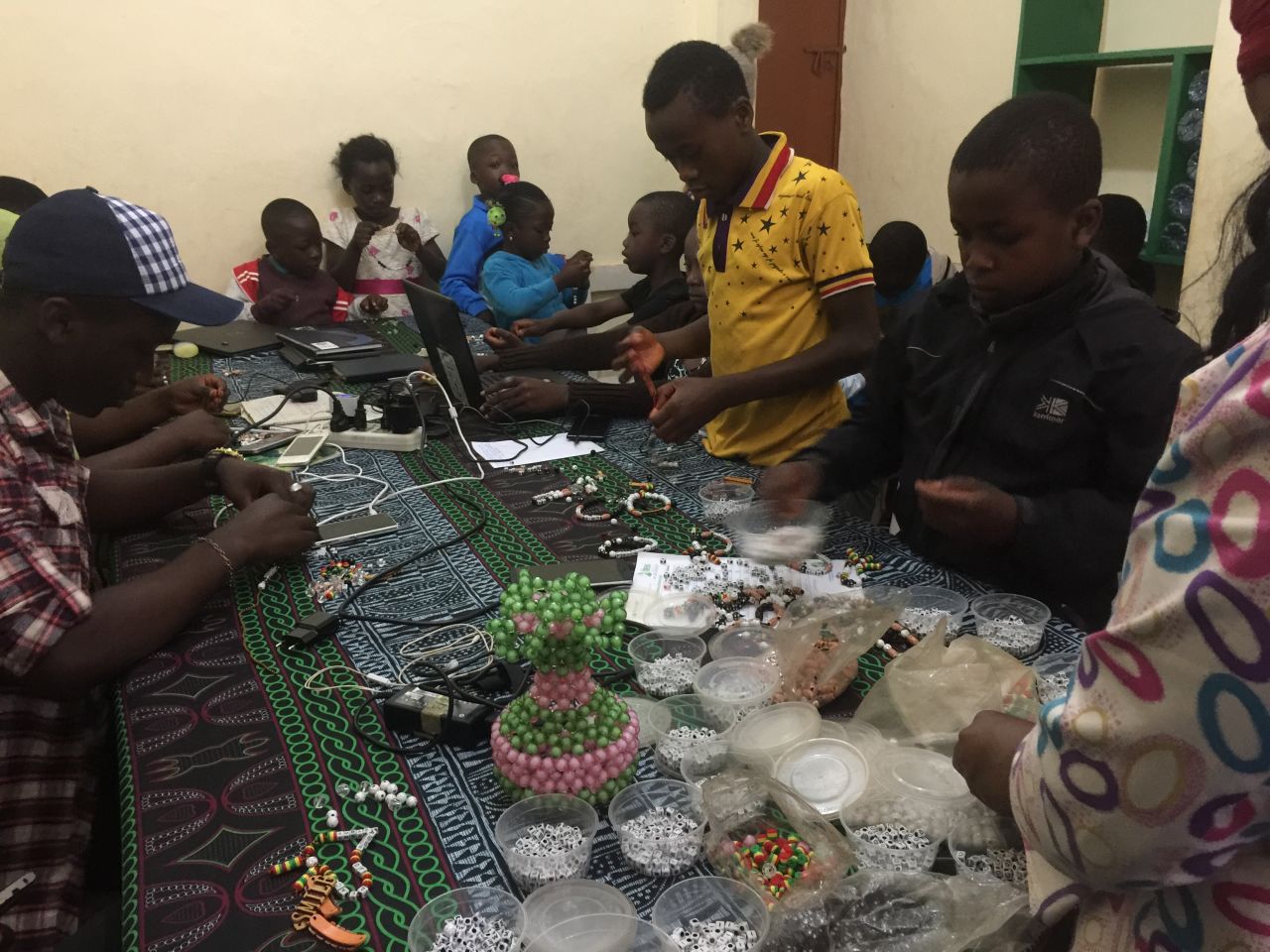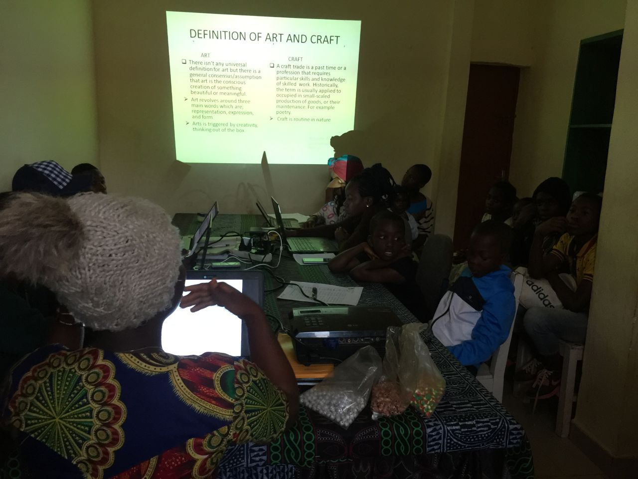 At the end of her 25 minutes power point presentation during which she explained the meaning and differences between arts and crafts as well as educated the young people on what it takes to be a fine artist and craftsman, she engaged the Earth Rangers and volunteers of The Greens to each produce a bracelet with their names on it.