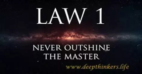 From the book, the first law, "Never Outshine The Master" States: Always make those above you feel comfortably superior. In your desire to please and impress them, do not go too far in displaying your talents or you might accomplish the opposite-inspire fear and insecurity. Make your masters appear more brilliant than they are and you will attain the heights of power.