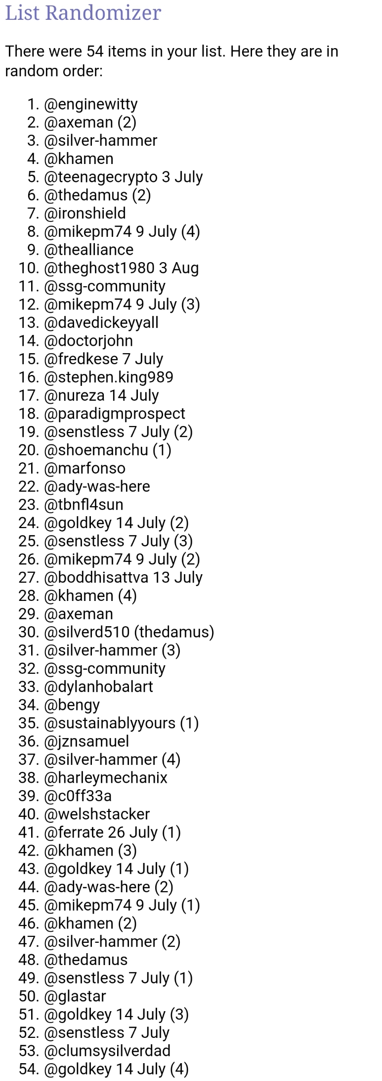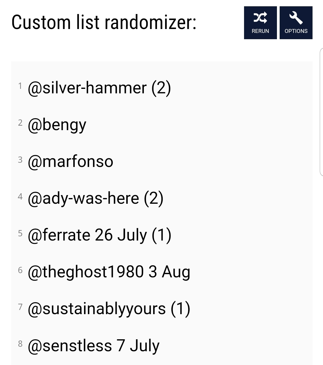 And next we will use Random Name Picker to select the 8 members for 100% Upvotes Tomorrow