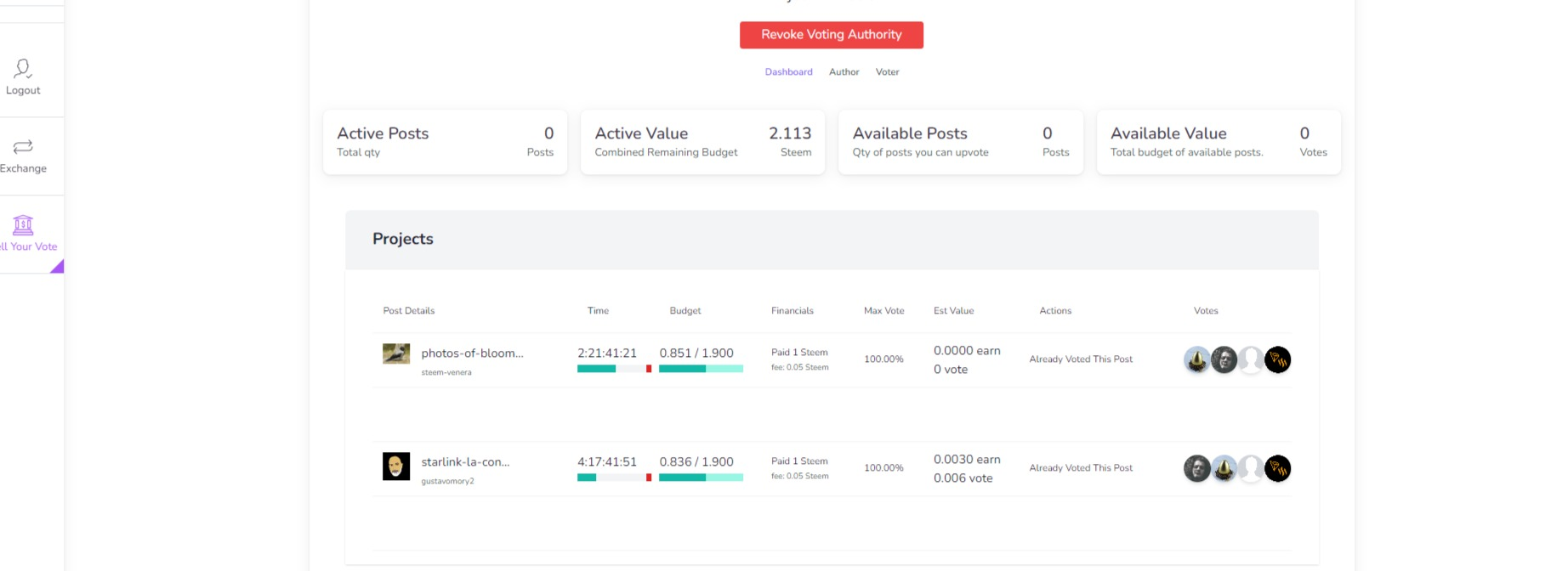 The process is easy and straightforward. First, visit the VoteMarket tab and click the green button on the top to grant authority. Then, pick and choose which posts you want to upvote and watch the steem roll in.