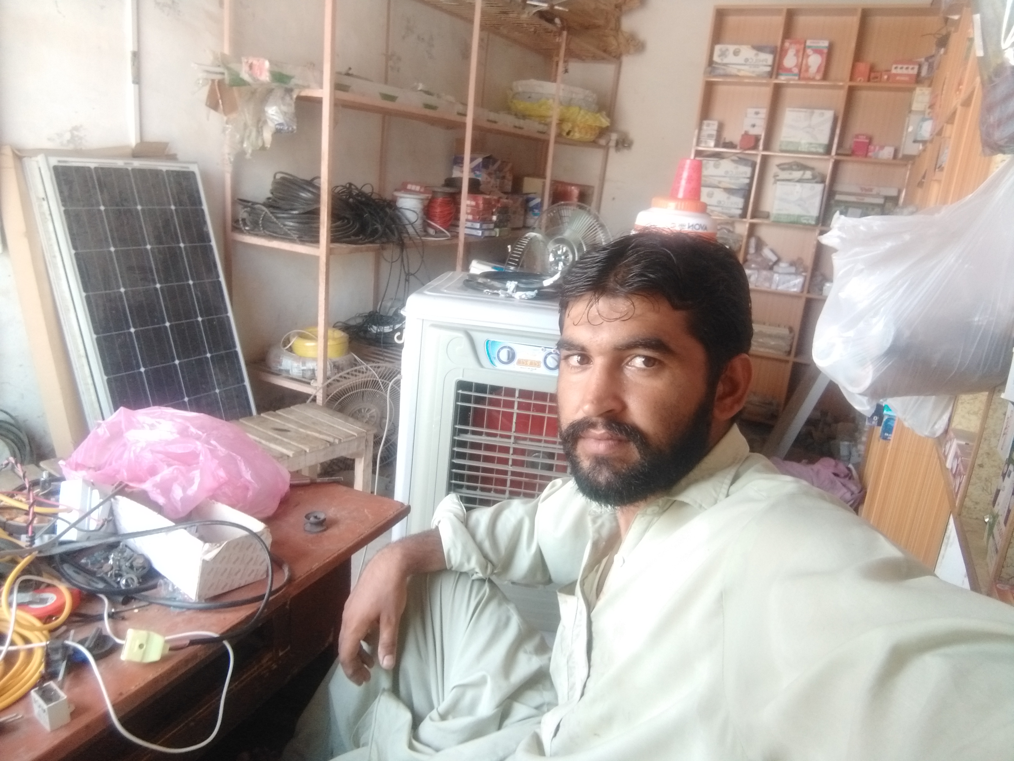 After that when I came to the shop, most of my work was at the shop. Then I finished it at one o'clock and after that I went home. It was very hot today. There was a tube well with our house. It was running. Then I took a bath in the towel. And I did ablution. And I prayed. After that I rested a little. I got up at four o'clock. Then I went to the shop. I had to put two fans in one place. The man was waiting for me. When I reached him, it was five o'clock. Then I put two fans on him. Then I came to the shop. Then after that I sat at the shop.