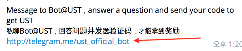 다시 1번 페이지 하단의 【Invitation Code】Send to telegram robot 코드를 복사하여 텔레그램 채팅창에 입력합니다.
