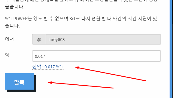 NEWS를위한 SCT (파워 업) 가이드를받는 방법linoy603 (40)in #userguide • 7 years ago 안녕 SCT 커뮤니티! 오늘 나는 너를 지분 (파워 업)하는 법을 초보자에게 보여줄 것이다! 또는 더 쉬운 방법 먼저 당신은 당신의 메인을 검색해야합니다. 그것은 다음과 같이 보일 것입니다: 이제 너는 지갑에 가야 해: 보유하고있는 SCT 금액을 찾아 STAKE을 눌러야합니다: STAKE (파워 업) 할 금액을 적어 두어야합니다: #sct #sct-cn #scot