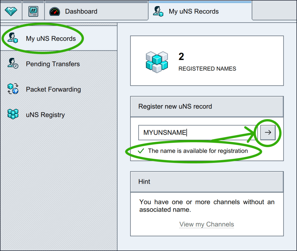 UNS पैकेट अग्रेषित करने के लिए एक पंजीकृत यूएनएस रिकॉर्ड की आवश्यकता होती है। यदि आप पहले से ही एक यूएनएस रिकॉर्ड नहीं रखते हैं, तो कृपया देखें कि यूएनएस रिकॉर्ड कैसे दर्ज किया जाए? निर्देशिका।