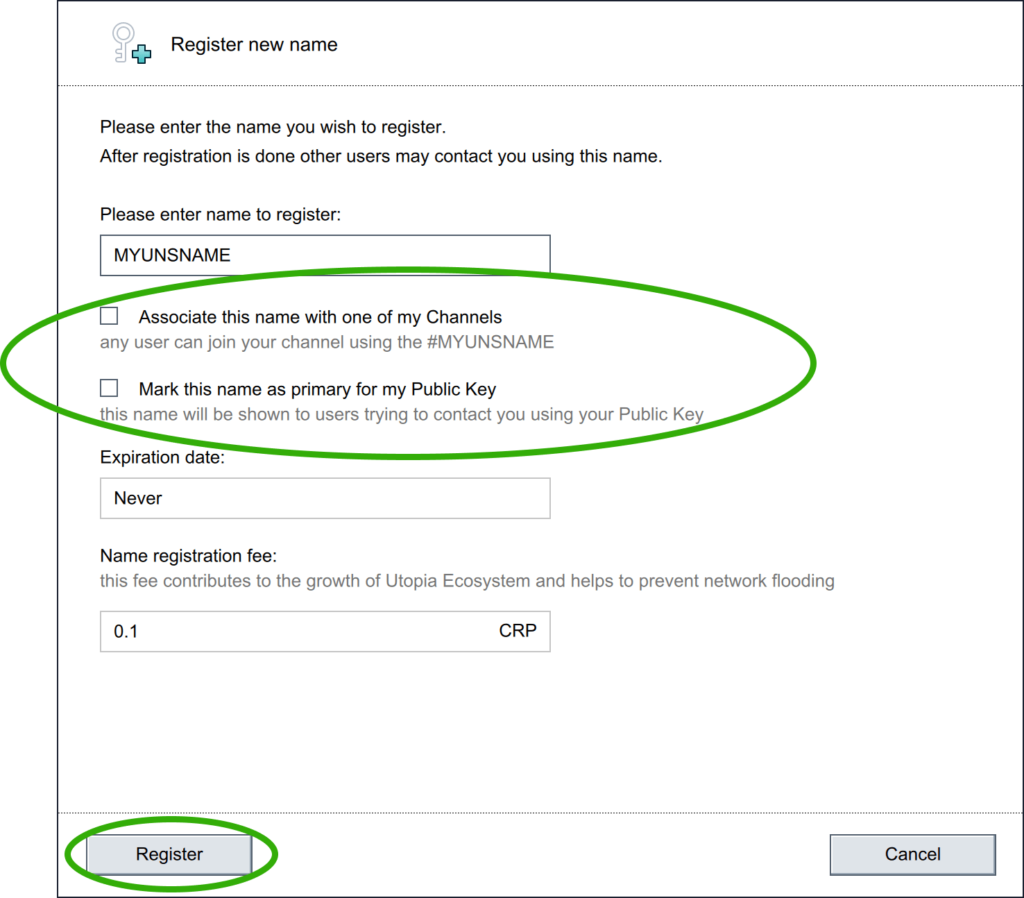 यूएनएस पंजीकरण मुफ्त नहीं है। एक आयोग है जो बाढ़ को रोकने और खनन के माध्यम से नेटवर्क के विकास का समर्थन करने के लिए यूटोपिया की ओर बदला जाता है। कमीशन का आकार नाम की लंबाई, लंबे नाम, सस्ता पर निर्भर करता है।