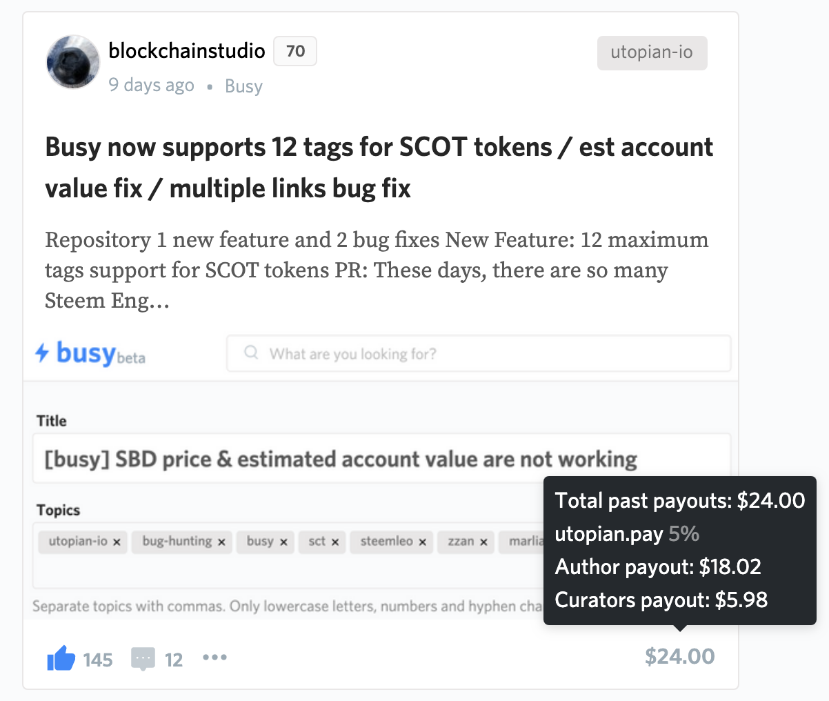 While this can be applicable to any UIs, I show Busy as an example, since Steemit is currently now even showing any beneficiaries information.