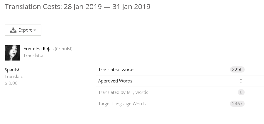 This counter includes non-translatable words, so it is necessary to work on more content to extract an average of 1000 translatable words.