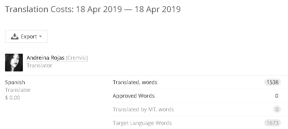 This counter includes non-translatable words, so it is necessary to work on more content to extract an average of 1000 translatable words.