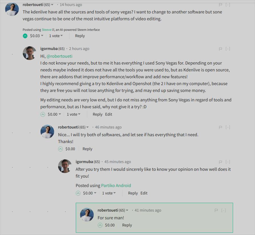 I don't think I have missed any bit, at any moment, the old paid software I used on my Youtube channel. Even though I "grew up using them" and everyone around me use them as their main editing tools, nowadays I see them as a backup, I do not think I will, in the near future, have the need to use the paid versions of the expensive editing software from those big companies, but if I do, I will try to go for the cheapest option, just to do whatever I happen to need them for, and them go back to the open source software, just because the free Kdenlive does everything the paid ones do and I want to support open source projects.