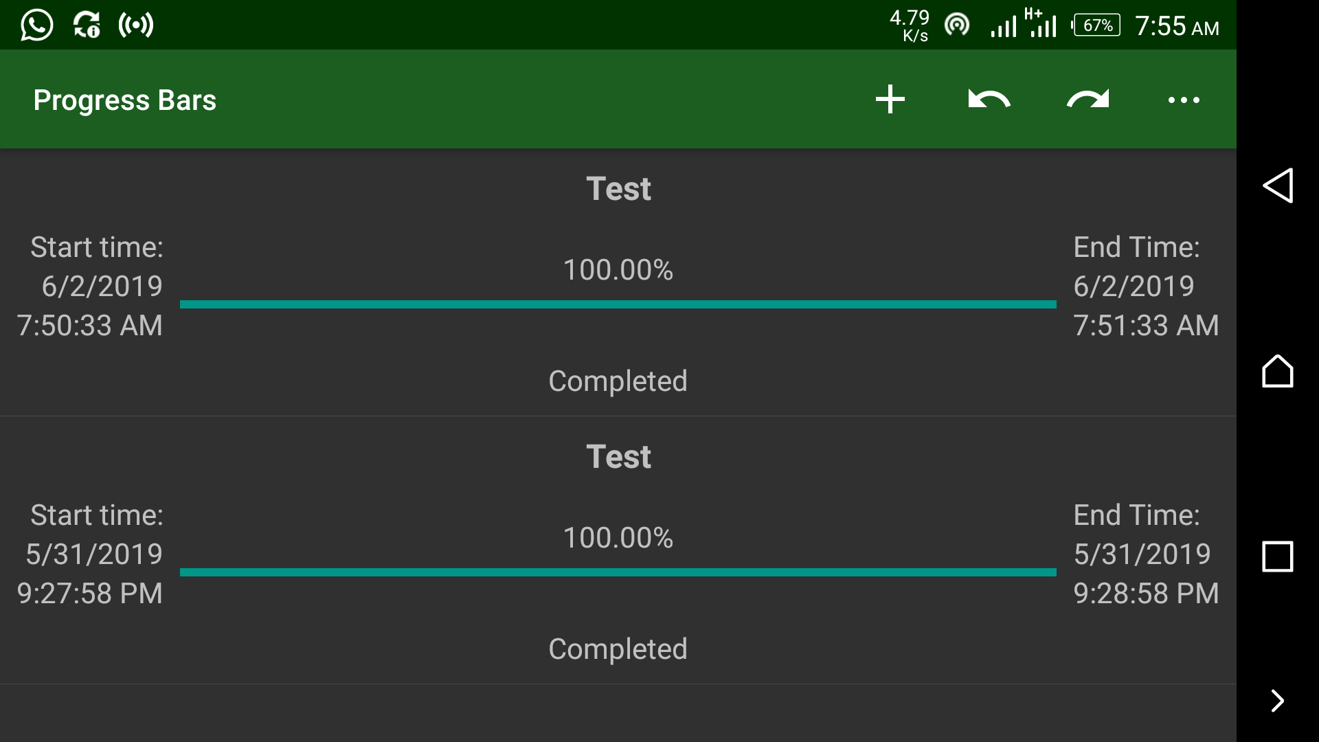This is the most important feature of the app. This is the first step that determines if the app is worth keeping or deserves to be binned. Progress Bars for a particular task is created by using the "+" button at the top right part of the page, precisely, it is the first Action Button from the left. This button is very easy to spot once the app is launched. This is a pretty obvious feature that should be present in such app.