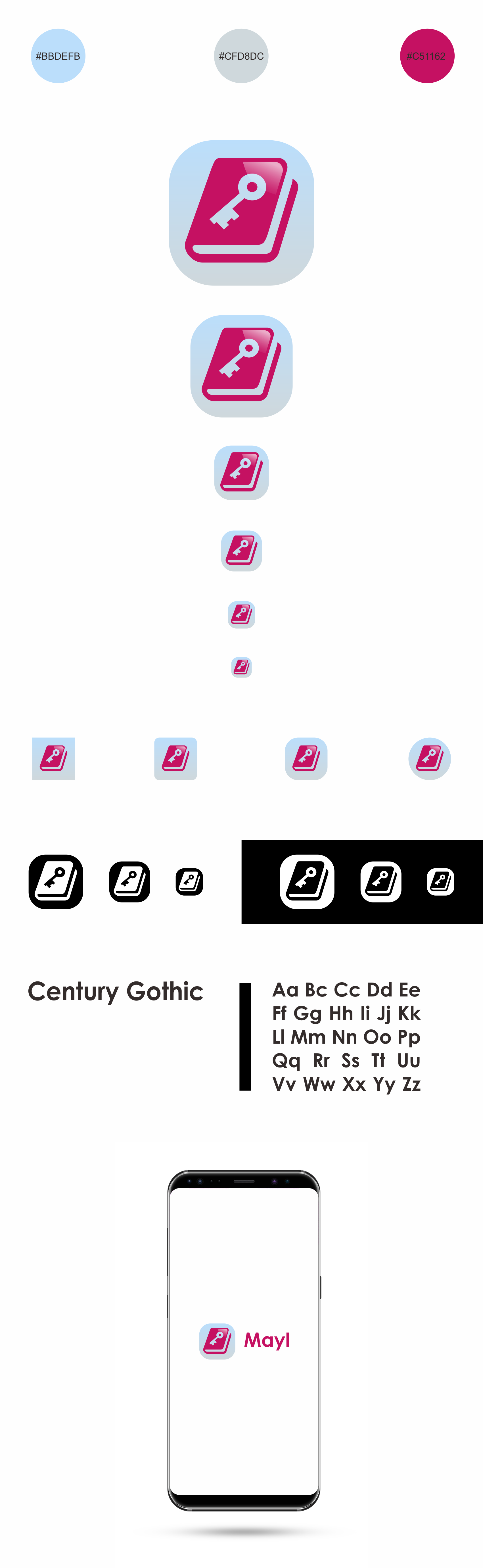 Scheme Colors, Size Variation Icon, Adaptive Icon, Notifications Icon, Typhography, and Mockup