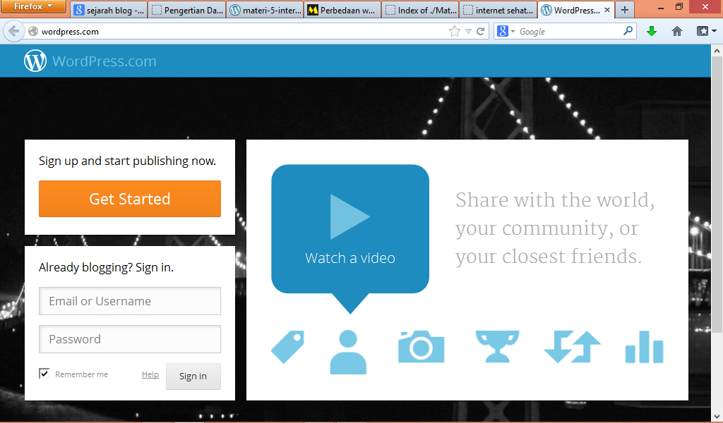 Buka www.wordpress.com di google chrome, atau bisa juga di Firefox.